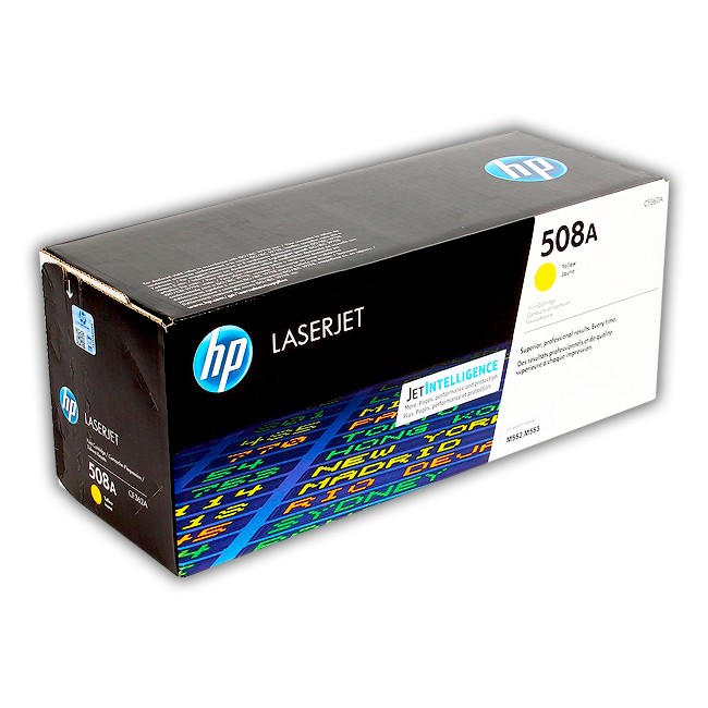 Cartucho de Toner HP 508A original de color yellow con rendimiento de 5.000 páginas de impresión.