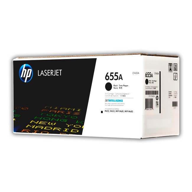 Cartucho de Toner HP 655A original de color negro con rendimiento de 12.500 páginas de impresión.
