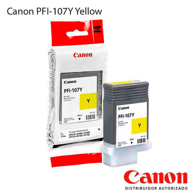 Cartucho de Tinta Canon PFI-107Y original de color Yellow con rendimiento de 130 mililitros para impresión