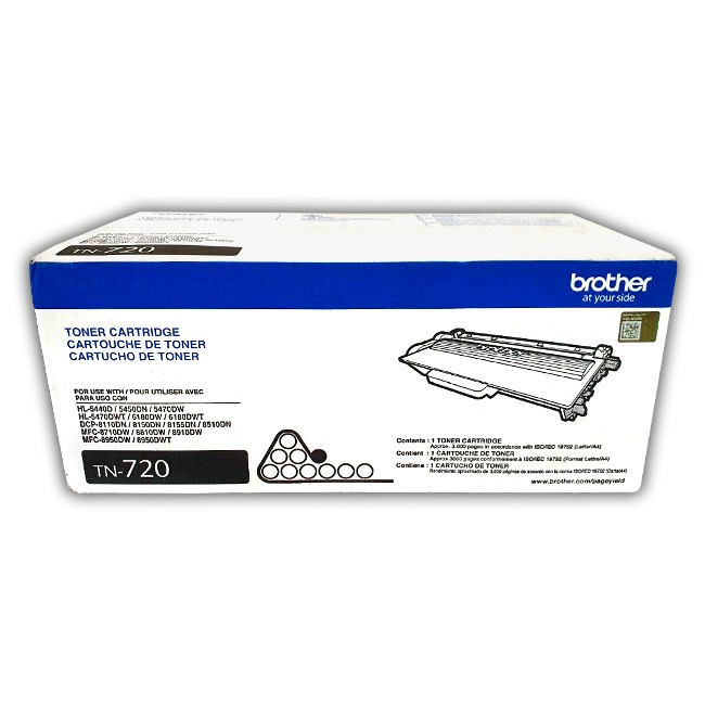 Cartucho de Toner Brother TN-720 original de color Negro con rendimiento de 3.000 páginas de impresión.