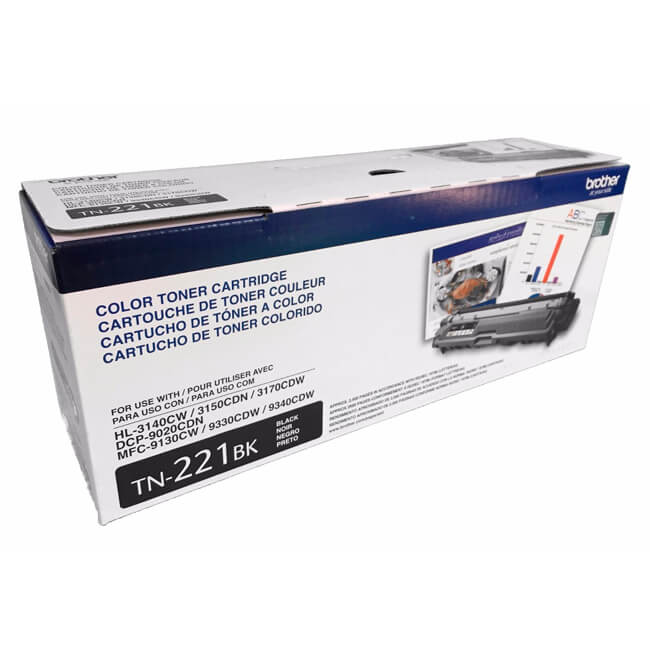 Cartucho de Toner Brother TN-221BK original de color Negro con rendimiento de 2.500 páginas de impresión.